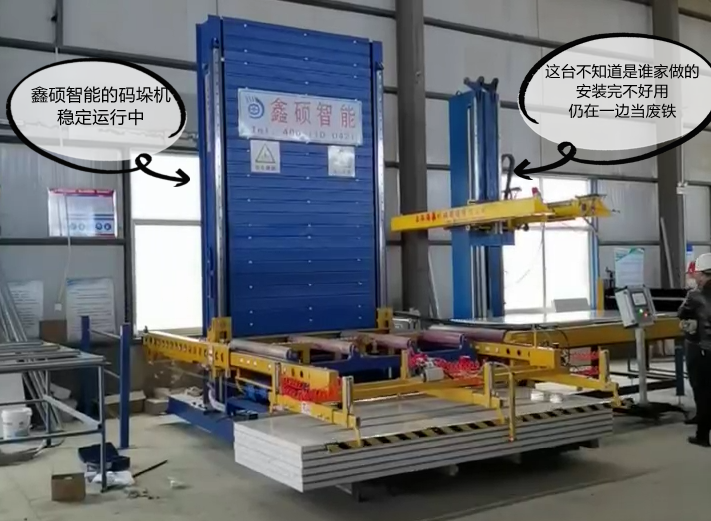 在客戶的印象里,鑫碩智能的產(chǎn)品第一印象就是貴,但是貴有貴的道理,凡是用過(guò)鑫碩智能設(shè)備的客戶,沒(méi)有說(shuō)過(guò)設(shè)備不好的。一方面是對(duì)設(shè)備的品質(zhì)認(rèn)可,另一方面是對(duì)鑫碩智能的服務(wù)認(rèn)可。所以買(mǎi)東西不能總盯著價(jià)格,最重要的是看品質(zhì)。鑫碩智能夾芯板碼垛機(jī),用過(guò)絕不會(huì)后悔